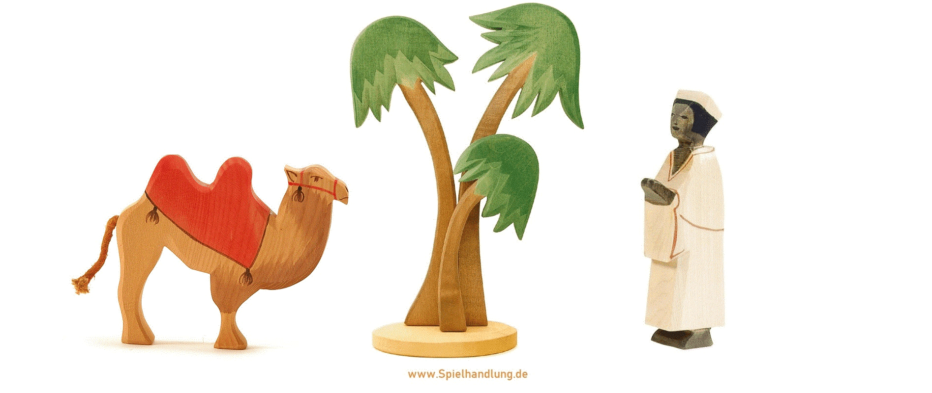 Ostheimer Palmengruppe mit Afrikaner und Kamel mit Sattel -3teilig lieferbar ab Mitte November